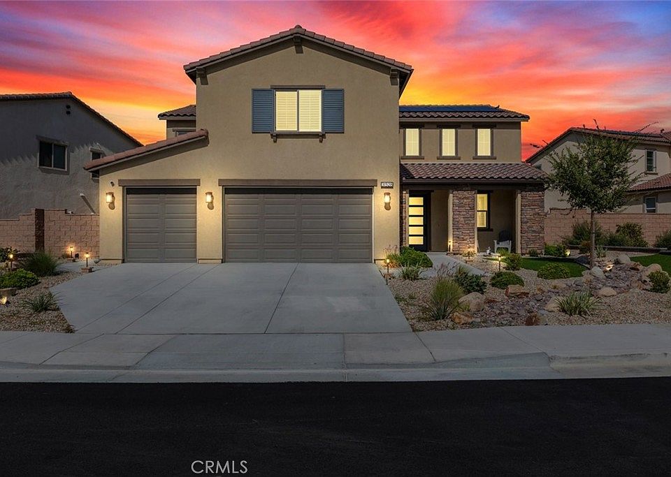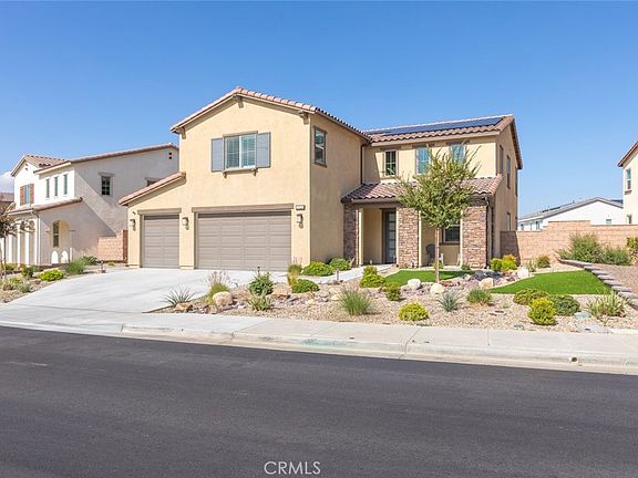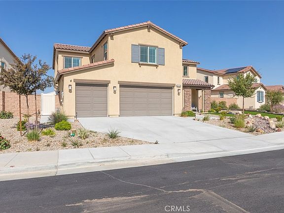 Put this one at the very top of your must-see list. This meticulously upgraded Tri-Pointe home offers 5 spacious bedrooms, 3.5 bathrooms, and 3,291 square feet of exceptional living space. Designed for those who appreciate quality, comfort, and modern elegance, this turnkey residence blends luxury finishes with thoughtful functionality at every turn. The open-concept floor plan is filled with natural light, highlighting the seamless flow of high-end luxury vinyl plank flooring throughout the home. Custom barn doors, shiplap accents, and designer ceiling fans in every room add warmth and character, creating a sense of refined sophistication. The gourmet kitchen is a showpiece in itself, featuring upgraded cabinetry with glass inserts, quartz countertops with stunning waterfall edges, a custom tile backsplash, and top-of-the-line stainless steel smart appliances. A farmhouse sink and a reverse osmosis water filtration system combine convenience with style, while the oversized island invites gatherings, casual meals, and conversations. Upstairs, the luxurious primary suite offers a private retreat designed to soothe and inspire. The spa-like bathroom features a freestanding soaking tub, a clear glass shower enclosure, and exquisite floor-to-ceiling tile work that rivals any high-end resort. The secondary bedrooms are generous in size, while the additional bathrooms echo the same sense of quality with quartz countertops, upgraded mirrors, and beautifully tiled flooring. The backyard continues the theme of luxury and functionality, offering a serene oasis perfect for both relaxation and entertaining. Designed for low maintenance with artificial turf, drought-tolerant plants, and raised garden planters. Beneath a durable metal-frame gazebo with electricity, the outdoor kitchen comes fully equipped with a smoker and pizza oven. The garage features epoxy flooring and a dedicated electrical subpanel with additional outlets. A whole-house fan and soft-water system enhance comfort and efficiency, while the paid-off solar panels offer eco-friendly living and significant energy savings. Perfectly situated near shopping, restaurants, award-winning schools, and the 215 and 15 freeways, this home combines the best of luxury, convenience, and modern design. Immaculate, move-in ready, and upgraded beyond expectations, this home stands out as a rare opportunity for those seeking true turnkey luxury—ready to welcome its next owner.