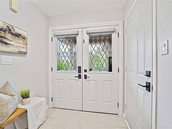 Custom double-door entryLarge windowsWood flooringChef-inspired kitchenStainless steel appliancesNew quartz countertopsInviting breakfast area