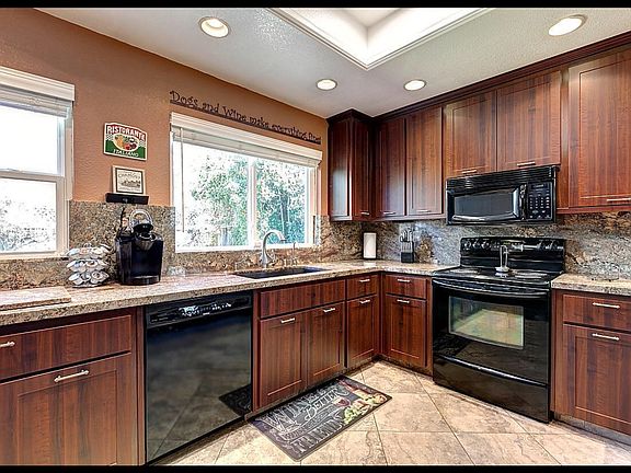 Gas fireplaceStorage loft in garageCorner lotMetal roofUpdated bathroomsRetaining wallRetractable electric patio cover