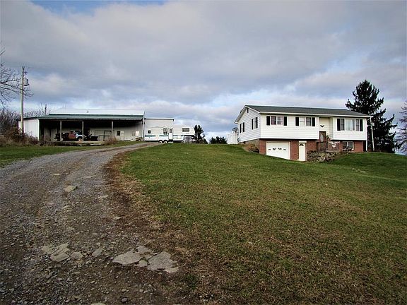 This home has plenty of space for the entire family! Three first floor bedrooms each with closets and a full bathroom on main level. Spacious kitchen and dining area great for entertaining. French doors in kitchen/dining area lead out to small deck and a patio area behind the home. Large living room on main level with views you can see for miles from your couch! Downstairs there is plenty of finished space to enjoy. Two nice sized bedrooms each have their own closet/storage spaces. Large and functional bathroom/laundry area on lower level with room for washer and dryer, a stand-up shower, toilet, and single sink vanity. Entryway to this split level home is bright and inviting. Integral garage on one side of lower level. Sitting on 1.05 acres in a gorgeous country setting with long views from the front AND back yard! Large outbuilding may be used for personal or commercial uses. Call TODAY to schedule a showing!