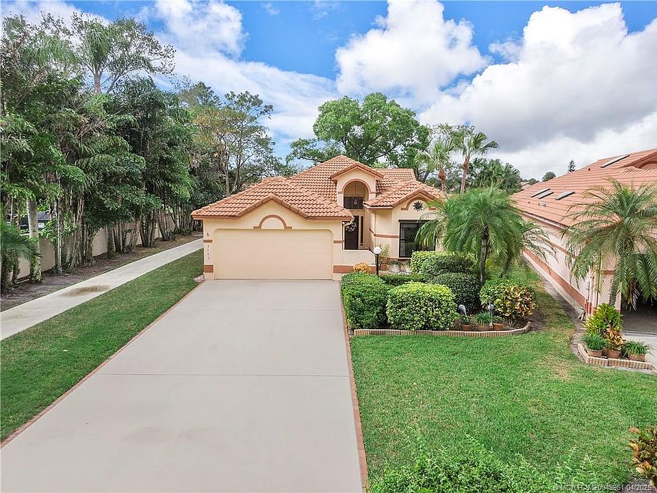 Meticulously maintained, 2 bed 2 1/2 bath + DEN pool home on Martin Downs Golf Course. NO MEMBERSHIP REQUIRED, gated community. Enjoy the large screened in pool area w/ 1/2 bath, outdoor shower & beautiful sunsets. Tile flooring throughout main living areas & laminate flooring in the bedrooms. Den/office can be used as a 3rd bedroom. Large primary bedroom w/ his & hers closets & walk-in closet. Remodeled primary bathroom boasts huge glass enclosed shower w/ bench & granite dual vanities (2020). Roof & hot water heater 2018. AC 2015. Eat in kitchen overlooks the golf course & features plenty of storage with recessed lighting. Large formal dining area flows into the family room. Full hurricane protection. Great location, close to highways, restaurants & shopping.