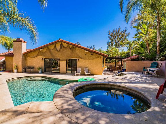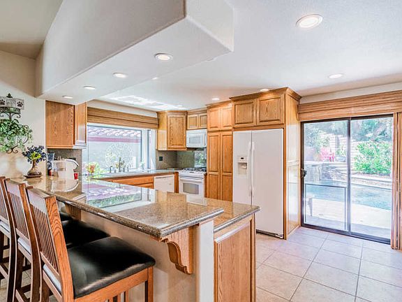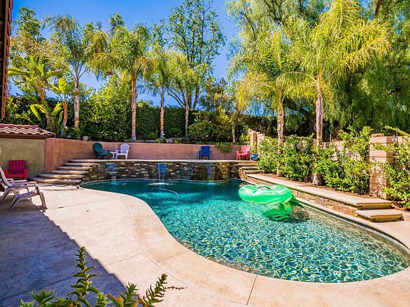Welcome home to this gorgeous Central Simi SINGLE STORY POOL Residence perfectly located in a cul-de-sac!! This excellent home boasts nearly 2,700 sf on a large 9,801 sf lot, 5 spacious bedrooms & 3 upgraded baths, Italian Porcelain Tile throughout, wainscoting, roman shades, step down formal living room w/warming fireplace, large kitchen & family room w/surround sound speakers & built-ins, master suite w/patio access, luxurious walk-in closet w/custom built-ins, master bath w/dual-sink vanity,jetted tub & oversized shower, 4 large secondary bedrooms (1 used as a bonus room) & 2 more spacious baths, 3 car garage with pull-down ladder to huge storage area + another pull-down ladder off main interior hallway for even more storage & dual A/C systems!!! Inviting rear yard with stamped concrete patio, fire pit, covered area, PebbleTec salt water pool/spa ready for all your summer entertaining!! Don't miss this fabulous residence!!