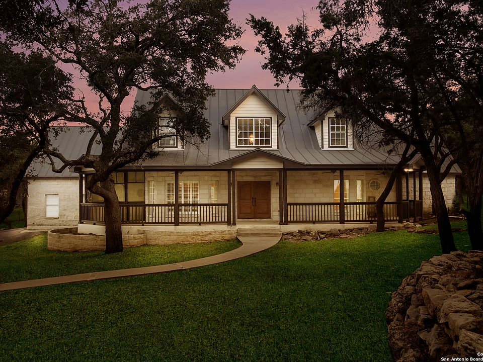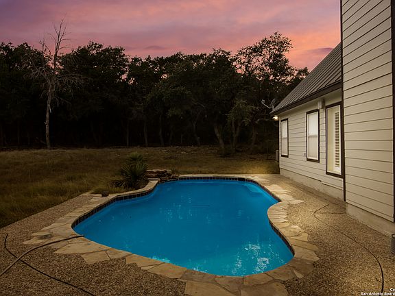 $10,000 FLOORING ALLOWANCE!!!Enjoy luxurious hill country living within the picturesque neighborhood of Rim Rock Ranch in Bulverde, TX! Situated on a sprawling 2-acre lot adorned with mature trees that recently had their canopy lifted, the property provides an idyllic retreat from the hustle and bustle of everyday life. As you approach the home, you'll be greeted by the inviting sight of a private wrap-around porch, perfect for enjoying your morning coffee or savoring the cool evening breeze. Step inside to discover a meticulously designed interior that seamlessly combines modern comforts with rustic charm. The primary bedroom, conveniently located on the first floor, exudes tranquility and elegance. Adjacent to it lies a renovated primary bathroom that is a true masterpiece, featuring an expansive walk-in shower that beckons relaxation, as well as double vanities that provide both style and functionality. For those who love to cook, the kitchen is a true chef's dream. With gleaming granite countertops and solid wood cabinetry featuring custom interiors, this space is both aesthetically pleasing and highly practical. Stainless steel appliances, including double ovens, promise to elevate your culinary adventures. The kitchen effortlessly flows into both a spacious dining area and a cozy eat-in kitchen, ensuring that every meal is a joyous occasion. The thoughtfully designed layout also encompasses additional finished space above the garage, offering flexibility for a living area, bedroom, or whatever your heart desires. This versatile area can be tailored to suit your needs, making it a true asset to the home. Beyond the confines of the main house, a Keith Zars pool recently resurfaced to pristine condition beckons you to take a refreshing dip on warm days. A testament to the property's versatility, a massive 2,000 sq ft commercial shop stands proudly. This space is a haven for craftsmen, hobbyists, or anyone in need of a generous work area. The shop boasts a separate, divided workshop complete with a full bathroom, while a mezzanine level adds convenient storage capacity. Both the house and the shop flaunt sleek metal roofs, exuding a contemporary touch while ensuring durability. The second-floor HVAC system was replaced within the past few years, guaranteeing a comfortable indoor climate year-round. This home is zoned into prestigious Comal ISD. Come tour this beauty today!