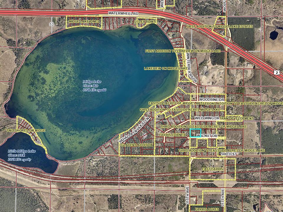 Generous residential building lot just west of Cass Lake! House site, driveway, septic, and well are already in, just waiting for your perfect home. This property also includes an outbuilding with dog kennel. Located within 6.5 miles of four public accesses that include Midge, Little Wolf, Wolf, and Grace Lakes!