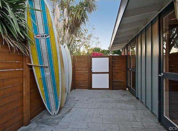 This Cliff May Rancho features a beautiful island kitchen designed by Steve Kennedy of Kitchen Studio in Naples. The open, light filled space includes a Fisher & Paykel six burner gas cooktop, Fagor oven, quartz countertops, custom wood cabinets and polished concrete floors. Staying true to the Cliff May design, the residence enjoys the original doors and floor to ceiling windows, glass gables, and open beam ceilings. The large backyard has ample space for a pool or for a myriad of other design choices. This charming property is located within walking distance to 800 acre El Dorado Park & Nature Preserve, and is part of the Rancho Estates tract, featuring a collection of midcentury modern homes designed by world renowned and celebrated architect, Cliff May.