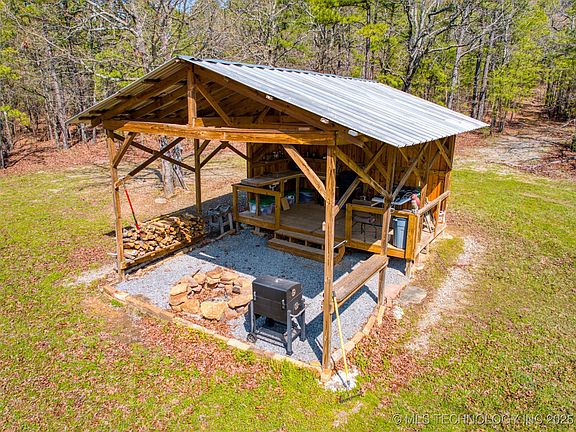 Welcome to Panther Mountain Nestled near the renowned Robbers Cave in Kinta, Oklahoma, this remarkable almost 80-acre property is an absolute dream for nature enthusiasts, hunters, and anyone seeking serenity. Boasting a gated entry for privacy and security, the land is designed for both relaxation and adventure. Multiple RV sites already have septic systems installed, making this property ready for your plans. The stunning stocked ponds, complete with charming bridges, offer the perfect setting for fishing or simply unwinding amidst nature's beauty. From the mountain tops, you’ll enjoy breathtaking views that epitomize tranquility. True to its reputation as a hunter's paradise, the land is abundant with wildlife, including deer, turkey, bears, and more. Whether you're envisioning a peaceful retreat, preparing for hunting season, or craving the calm of natural surroundings, this property checks all the boxes. Located in scenic Haskell County, don’t miss this rare opportunity to make it yours. Reach out today for more details or to arrange a visit. Cabin site already started as well as a big outdoor pavilion with outdoor kitchen, fire pits, etc. already built and ready for your hunting paradise. Drone photography coming soon.