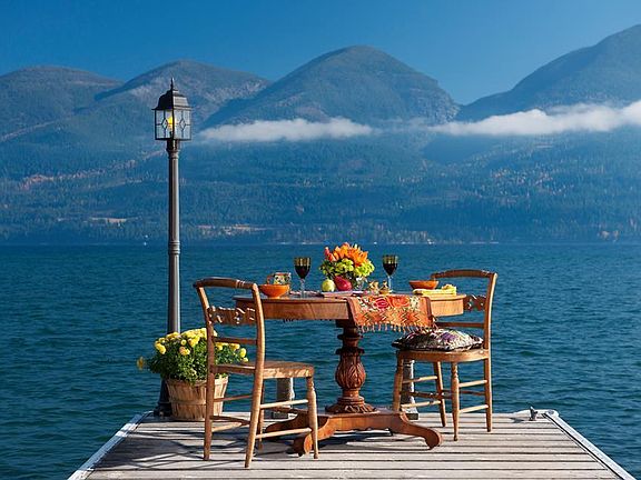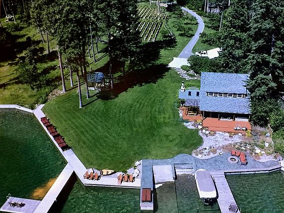 A most charming property on Flathead Lake! This Finley Point estate graces 2 waterfront lots with 219 ft frontage, 2 docks, concrete sunning pier, and boat ramp. Edging the frontage is wide patio with firepit - . a wonderful place to enjoy the Mission Mtn views & lake activities. Main house sits at water's edge. Open concept main level with cozy fireplace and gourmet kitchen w/ 2 gas stoves. Attached is outdoor pizza oven fireplace. Master bedroom w/ ensuite on main, loft bedroom for guests. Guest house has classic Montana feel includes stone fireplace, a corner kitchenette & enclosed sleeping porch bedroom. Addtl improvements are a lg barn w/ loft bunkroom & walk-in cooler room, 12 x 20 Greenhouse, Office cabin, hot tub, Marquette grapes vineyard, 100 tree orchard. AG status for taxes.