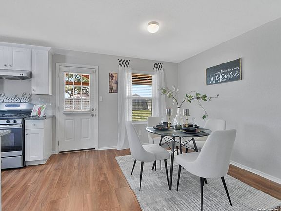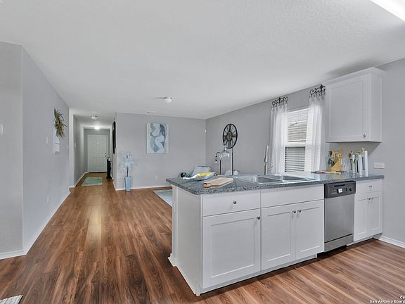 BEAUTIFUL SINGLE STORY WITH ALL NEW FLOORING, NO CARPET THROUGHOUT AND NEW PAINT OF THE INTERIOR. The layout thoughtfully separates the secondary bedrooms from the primary suite, providing a private retreat for relaxation. At the heart of this home lies a beautiful kitchen with granite countertops and a gas cooking stove. Do not forget the custom expansive covered wood deck and meticulously landscaped front and back yards with a full sprinkler system, perfect for entertaining or simply enjoying a tranquil moment. Community and Location: The neighborhood amenities are second to none. Take a leisurely stroll to the community park to enjoy a refreshing swim in the pool or explore the winding walking and biking trails. Convenience is another hallmark of this beautiful home. Located just off Highway 281, you will have quick and easy access to COMAL ISD schools and shopping options like HEB and Walmart. Plus, the proximity to Highway 1863 ensures effortless commuting and exploration of the vibrant Bulverde area.