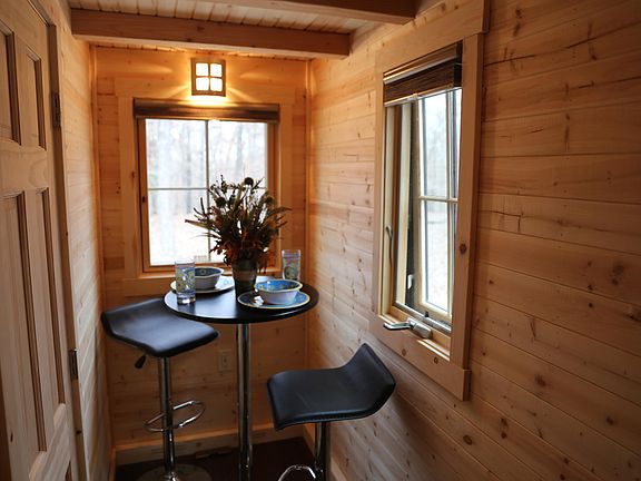 Tumble Weed Tiny Home located in the Ozark Mountains of Southern Missouri . Property boasts private setting with mature trees and a 3.5 acre lake. The property joins with Ozark Retreat Center, which is a 66 acre sustainable campus consisting of cleared fields and woods. This tiny home also offers the comfort of a storm shelter.