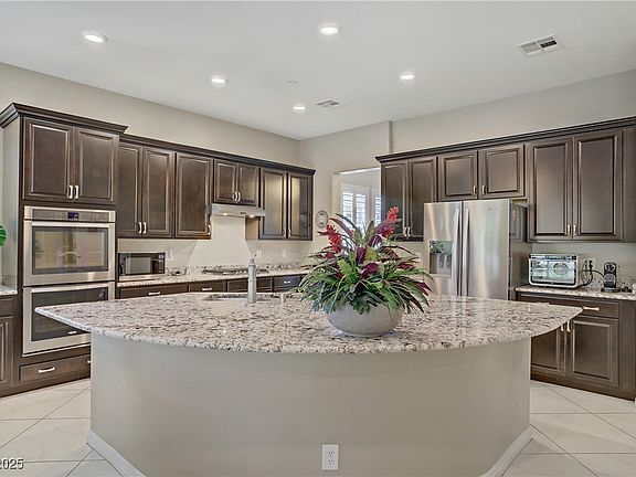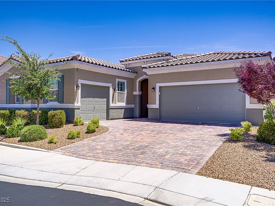 Stunning single-story home nestled in a gated enclave within the sought-after Inspirada community! This beautifully upgraded residence offers the perfect blend of style, function, and privacy. An inviting open floorplan filled with natural light, warm tones, Porcelain marble flooring, and auto dimming lights throughout. The gourmet kitchen boasts granite countertops, double ovens, SS appliances, a large island, and a walk-in pantry—perfect for daily living or entertaining. The spacious primary suite features a luxurious en-suite bathroom w/ dual vanities, a walk-in shower, and generous walk-in closet. Two additional bedrooms are positioned on the opposite side of the home. Outside, enjoy your peaceful backyard w/ covered patio space—ideal for outdoor dining or relaxing under the stars. Separate 200 amp electric line for future pool/jacuzzi. Enjoy all that Inspirada has to offer: community parks, pools, walking trails & more. Mortgage savings may be available for buyers of this listing.