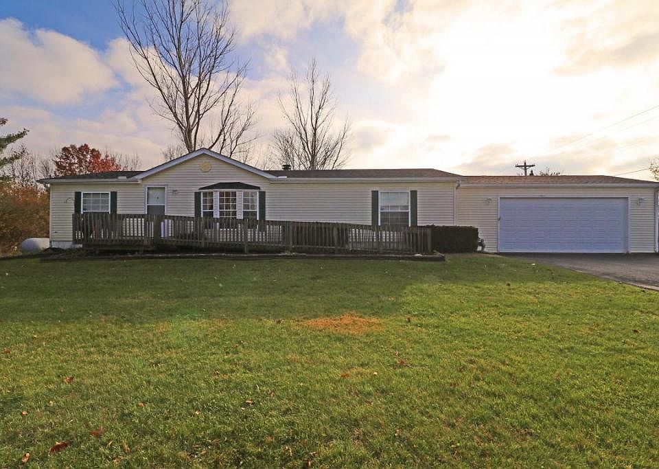 Open floor plan with vaulted ceilings, wood burning fireplace, newer wood like laminate floors. 3 Bedrooms with walk-in closets. Owner's Suite has private Bath with skylight, garden tub & separate shower. Large Living Room with fireplace, Dining Room with sliding glass door to Deck, Kitchen with abundant array of cabinets, breakfast bar, appliances including new dishwasher. Partial Basement for storage/workshop, etc. Updates include: Roof (2015), exterior lighting with sensors, new interior doors, freshly painted main living area, new interior lighting. 1st floor Laundry. 2 car Garage with utility door to yard. Nice acre plus lot on desirable Dixon Road, back yard Deck & handy storage shed.....close to everything!