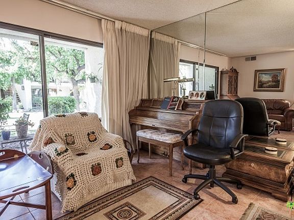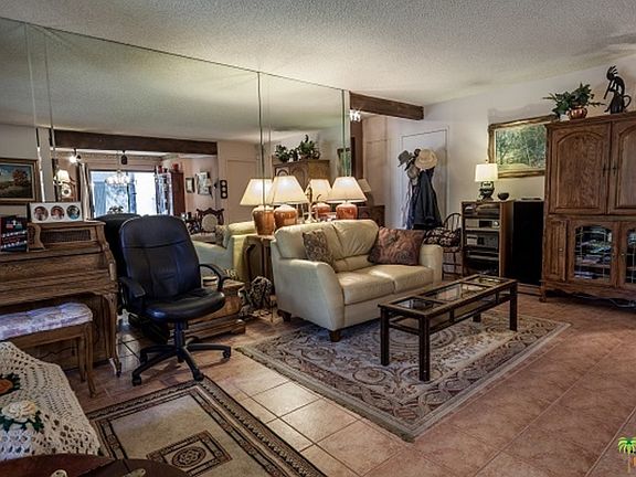 Largest model- 1339 sq. ft. - 3 bedrooms, 2 baths and you own the land in the gated Palm Villas ( The Palms) complex. Downstairs corner unit, so no steps. Refrigerator, washer, and dryer included. HOA dues include water, trash, and basic cable. One pet allowed and rental minimum is 30 days. Two large pools and two tennis courts.