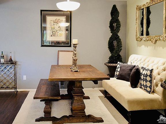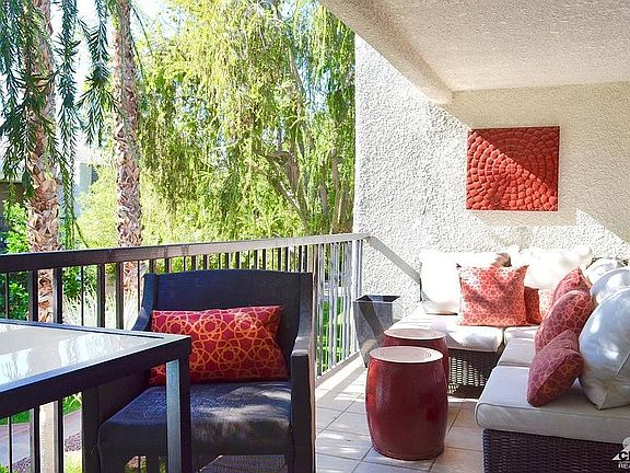 Nestled inside the gates of "The Palms" this updated and renovated 2 Bedroom condo is the perfect home. It is upstairs and features 12 feet high ceilings making this condo feel vast and spacious. Updates that include overhead ceiling lights in living room and and master bedroom. Restoration Hardware fixtures. Newer appliances, newer hardwood flooring and carpet in the the bedrooms. This condo features private laundry! Enjoy a dip in the pool or relax in the spa steps steps away from your front door. Two spacious balconies with a south facing balcony featuring mountain views. Location, Location, Location. Short drive to downtown Palm Springs, airport, golf, hiking, theaters, shopping, and restaurants. Turn key offered fully furnished or unfurnished. Please call Paul Reynolds at for more information or to schedule an appointment for viewing. Owner pays for water and trash. Tenant pays for electric and gas. Cat or small dogs ok.