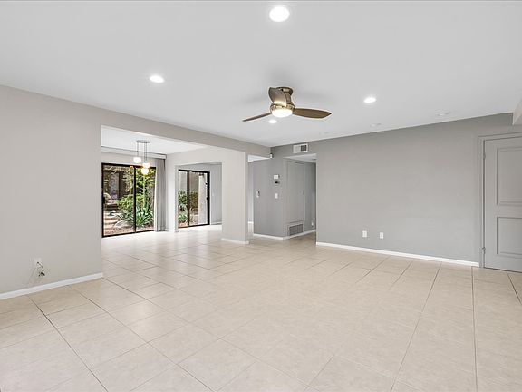 Excellent South Palm Springs condo in the gated community of Palm Villas. This condo boasts an open living concept that contains two bedrooms, two bathrooms, large kitchen with stainless appliances, living room, dining room, and office space . Full size washer and dryer in unit! There are ceramic tile floors throughout and two quaint patios with views onto the greenbelt. There is one covered carport and plenty of open guest parking. This ground-floor end-unit is adjacent to the community pool & spa, outdoor barbecues, and a short walk to play a game of tennis at the condominium tennis courts. Located in the heart of Palm Springs close to shopping, restaurants, and grocery stores. Palm Springs Living at its best! Looking for a 12 month lease. The tenant would be responsible to pay electric and gas.