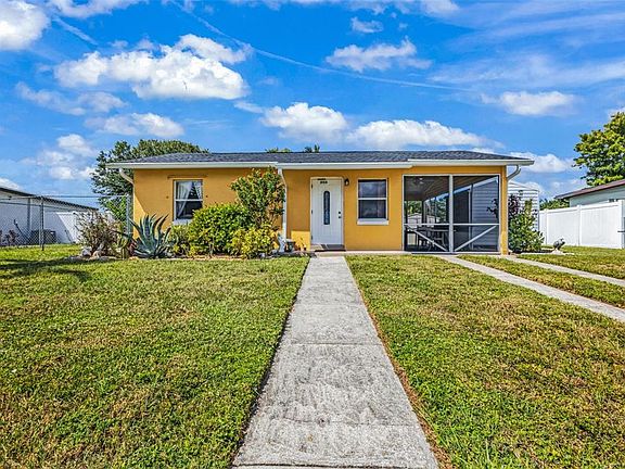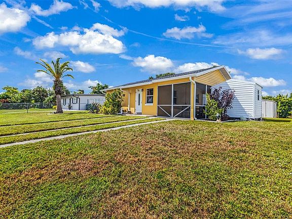 Don’t let the square footage fool you—this outstanding floor plan makes the home feel open and inviting from the moment you walk in. The living room offers surprising space for gathering, while the galley-style kitchen provides both function and flow—something rarely found in this area. A bonus back room with its own window A/C adds flexibility and extra usable space for an office, hobby room, or guest area. This home has been exceptionally well maintained, making it truly move-in ready. The seller has added extra attic insulation, and combined with the new roof, you’ll be pleasantly surprised by how low the electric bills are. The landscaping is beautiful, and the front and back yards are separately fenced—perfect for keeping pets and kids safely divided or just enjoying different outdoor areas. The newly added screened porch is one of the coolest features, giving you a huge bug-free outdoor space that can instantly open up into a carport thanks to the double swinging doors that face the road. Conveniently located near Port Charlotte’s major shopping, the hospital, and multiple boat ramps, this home offers comfort, efficiency, and the best of Florida living—all in one smartly designed space.
