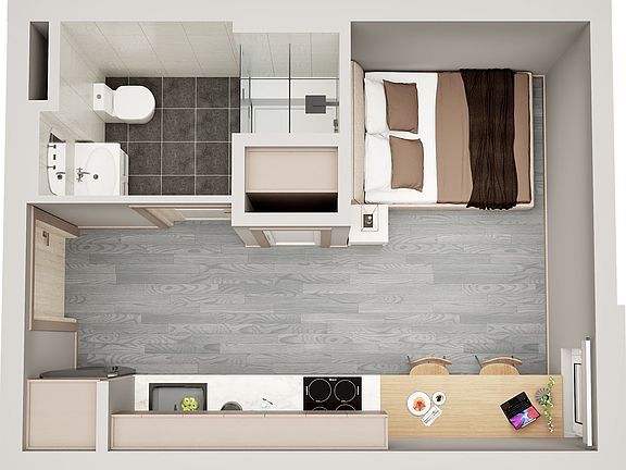 This cozy studio with kitchenette offers a place to sleep in solace and communal kitchens, lounges and amenities allowing you to have it all.