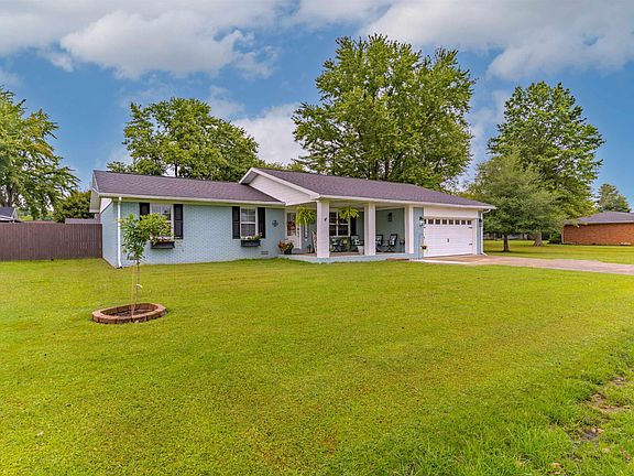 Welcome to this beautifully updated 4 bedroom, 2 bath brick ranch home with a great floor plan and an attached 2 car garage! Upon entering the home, you will find a formal living room with windows overlooking the large, covered front porch. The gorgeous newer kitchen, with bar seating at the large island, opens into the family room w/fireplace and doors to the back patio. This home has been totally updated with beautiful finishes and is move in ready! The large backyard features a pool, a fully fence yard, and a spacious entertaining area perfect for gatherings. The home is located conveniently in Rockport and just 10 minutes to downtown Owensboro and less than 25 minutes from Newburgh.