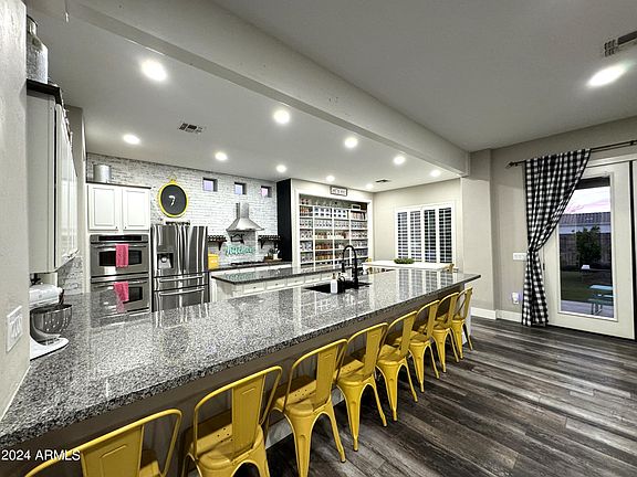 20K reduction on this highly upgraded, remodeled and beautifully decorated home in Shamrock Estates. The rarely available Cabrini floor plan with 5 Bedrooms and CASITA with a separate entrance perfect for guests or a home office is absolutely stunning. Custom remodeled open kitchen with a beautiful island, granite counters, large open pantry, and backsplash stretching to the ceiling are featured in the chef's kitchen. Amazing upgrades throughout including French doors to patio, new plank flooring, new living room cabinets, plantation shutters, remodeled bathrooms, & a sweeping stairway. Solar Panels are owned and paid off. Relax in the Pebble Sheen custom pool and luscious backyard with built ins or in the spacious entrance courtyard with pavers and new string lights.