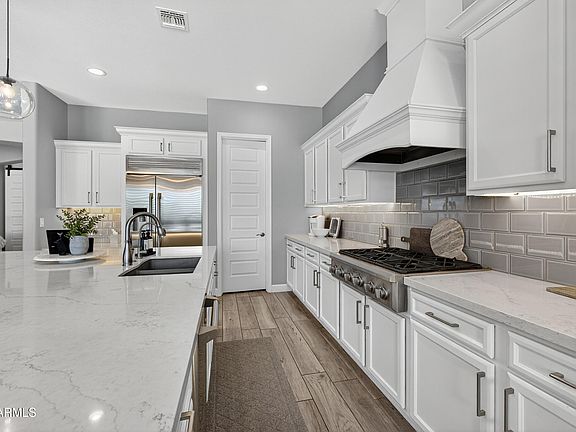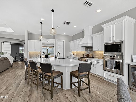 Check out this David Weekly Built, SINGLE STORY, 5 bed, + Office, 4.5 Baths, 4 CAR GARAGE, on over a 1/2 Acre lot in the GATED COMMUNITY of Acacia Estates. The backyard features an Oversized Patio, Pergola w/ a built in BBQ Grill, Views of the San Tan Mountains, Salt Water Pool & Spa, Turf in all the right places, and RV Gate to store all your toys. Inside, you will find wood-look tile throughout the entire home, a gourmet kitchen w/ GE Monogram Appliances, built in oven & refrigerator, 42'' staggered cabinetry, and walk in pantry. The living room has great detail with a built in entertainment center, huge patio slider doors & coffered ceilings. South Gilbert is an amazing place to live with access to hike the San Tan Mountains, great local restaurants & shopping like Blue 32 & Designer Blvd. and A+ Rated Schools, this house is the one!