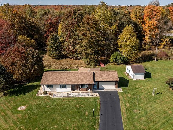 Welcome home to this 3 bed| 2 full bath ranch on gorgeous lot situated on a cul-de-sac. Walking in you will find a large living room with great natural light; open kitchen and dining area with lots of cabinet space and counter space along with a stainless steel appliance package, a sliding glass door that leads you out to a beautiful sunroom that overlooks the backyard; a primary bedroom with ensuite full bath; two additional bedrooms and another full bath; the basement is a blank canvas and could be finished off to your liking; outside get ready to be WOWED by the gorgeous backyard with a sweet little bridge, the sweetest shed (she shed) and a 2 car attached garage; this home also has a new roof; lots of privacy on this street along with almost an acre of land make this a must see home!