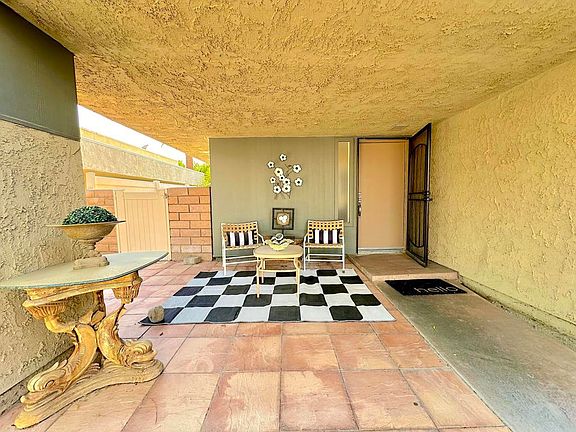 Welcome to this beautifully remodeled 2-bedroom, 2-bathroom condo in the coveted Sunrise Palms community. This modern oasis has been thoughtfully upgraded, featuring a stylish kitchen and contemporary bathrooms, set back nook with elegant wet bar, along with an expanded secondary bedroom for added comfort.Step outside into your private, spacious backyard, where mature hedges create a tranquil retreat. Enjoy the soothing sounds of the water feature as you relax in your lush surroundings. Located in a gated community that offers 8 pools and spas, tennis and pickleball courts, basketball courts, walking paths, and scenic sitting areas with breathtaking mountain views. Just minutes from Historic Downtown Palm Springs, you'll have access to world-class dining, shopping, and attractions.