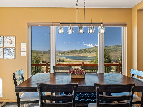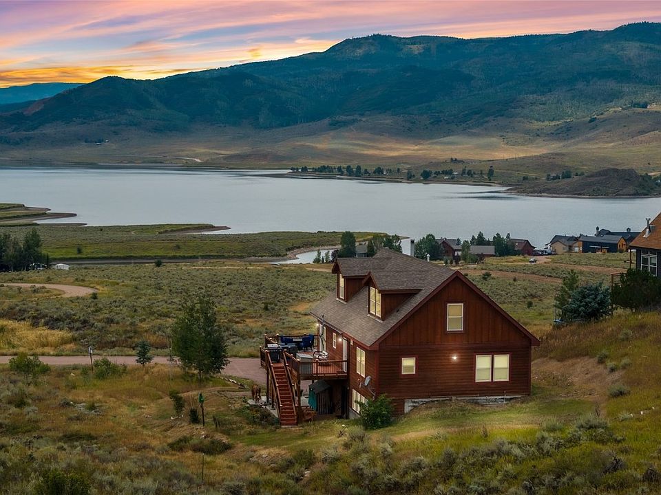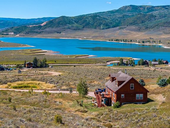 Chalet style home offers the perfect blend of panoramic views, privacy, and year-round adventure. Located on over a half-acre above Stagecoach Reservoir, this well-appointed home features direct trail access and borders 880+ acres of BLM land. The neighborhood of South Shore is traditionally off grid but construction is actively underway to have this home be on grid by this fall. The main level of the home welcomes you with a wood-burning fireplace, an open-concept living and dining space, modern kitchen with a large island, stainless steel appliances, and silestone countertops. This level has a primary bedroom that is warm and private with a propane fireplace with mountain views. The en-suite bath includes granite countertops and recently updated stone shower. Additionally there is a guest bedroom, flexible office or third bedroom, large bathroom, and laundry room. Upstairs offers a large flex space and a spacious guest bedroom, while the walk out lower level provides a family room and private guest suite—perfect for visiting friends and in-laws. Step outside to an oversized deck with jaw-dropping views and room to entertain. A wood-burning hot tub creates a true Colorado mountain experience. The oversized two-car garage offers excellent gear and vehicle storage, and the large concrete pad is ideal for RV or boat parking. This home comes with two solar arrays ready to be tied into the grid and a backup generator already in place to have energy flexibility and peace of mind in every season. Stagecoach is a welcoming community where neighbors walk dogs along trails and dirt roads, and you’ll enjoy boat ramp access, fishing, water sports, hiking, biking, and cross-country skiing—all just a short drive from Steamboat Springs for shopping, dining, and world-class skiing.