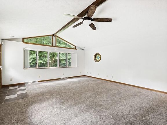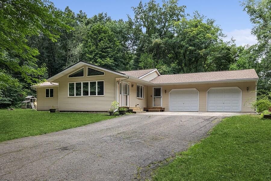 Beautiful ranch home offers relaxed living all on one level plus a finished basement. Pride of ownership shows with this beautiful home offering a vaulted living room, nice size kitchen with snack bar and pantry flowing into informal dining area. Home boasts over 1,900 SF total living space on two levels with 3 bedrooms, 2 full baths, and main floor laundry. Basement has a family room and office/den area. Exterior living is enhanced with a deck, nice size yard, wooded setting, and play set. Recent updates include new carpet 2023, roof 2021, and solar panels 2021. Solar system has battery capacity. Ample storage space in the basement, garage, and shed. Don't miss out on this great home!