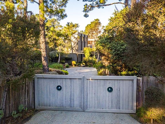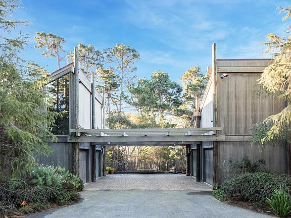 On a quiet street just up the road from the Pebble Beach resort behind a private gated entrance lies this striking architectural home with multiple indoor-outdoor living areas to breathe in the serene forest atmosphere. Passing through the lush front archway you will enter into a grand living room with soaring vaulted ceilings and ocean views that extend throughout much of the house. Plentiful windows and skylights contribute abundant natural light and the surrounding Del Monte Forest provides privacy and filtered golden sunshine during the day. The spacious master suite includes a walk-in closet, soaking tub, and a large balcony to enjoy sunsets each evening. Although the property is just a short drive from shopping, restaurants, and the Beach & Tennis Club, it provides a sense of serenity usually found in the likes of Big Sur. Welcome home to your very own Pebble Beach Haven.