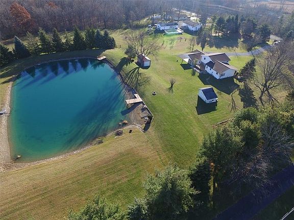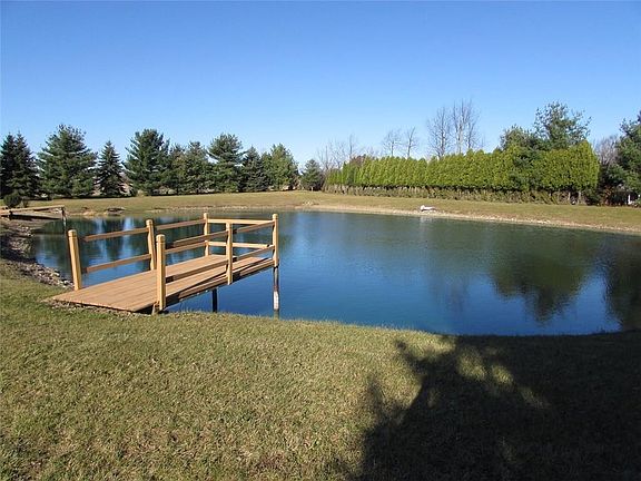 Immaculate tri-level home with large 2 car garage & pond on 3.79 acres! Interior features updated kitchen with Kraft Maid cabinets and Corian countertops, solid cherry interior doors, formal living room, family room, rec room with vented propane fireplace, tank less water heater, 200 amp breaker box, generator hook up, & partial basement. Exterior features traditional front porch, covered patio, deck, 26' x 30' 2 car attached garage, storage shed, pond with 2 decks & evergreens for privacy!