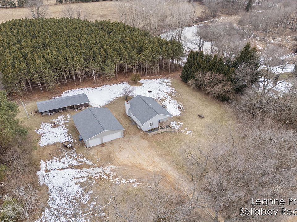 Welcome home to this hidden and peaceful Middleville gem! Tucked quietly off of W State Rd on Johnson Road, and 5 minutes outside of Middleville, this lovely 3 bedroom ranch home is ready for it's new owners! Featuring a primary level owner's suite with ensuite bathroom, main floor laundry room, main floor open concept and vaulted ceilings, this bright and welcoming home is a must see! Travel downstairs to the finished, walkout basement to find two additional bedrooms, additional living room and plentiful storage space! Outside you will find a 2022 build 40 x 32 pole barn for all of your parking, workshop and hobby needs! Travel to the back end of the property to find an additional small livestock barn, ready for any adventure you desire! Prime property location for Grand Rapids commute!