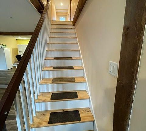 No showings without first submitting an application through Zillow that lists your proof of income and credit report and background check. Nicely renovated townhouse style 2 floor Apt. Granite counter tops. With a kitchen, living room and and half bath on the ground floor and two bedrooms and two baths on the second floor. Nice exposed wood beams throughout. Parking in the back and side of building. Great apt for a young family. Max 2 adults, 2 cars and max 2 children. W/D hookup in the apt but you must bring your own. Central AC in all rooms. You control your own heat, electric and water. Video has been posted from two years ago before I installed the vinyl floors on the ground floor. $1550 due at lease signing. $1550 more due seven days before move in. And half of last month rent is due by move in date. $725. Last month rent is held in escrow at the mgmt company and not paid to the landlord until your last month in the apt. Tenant pays for heat, water, sewer and electric. (Gas heat and high efficient brand new furnace) . $1550 due at lease signing. $1550 more due seven days before move in. And half of last month rent is due by move in date. $725. Last month rent is held in escrow at the mgmt company and not paid to the landlord until your last month in the apt.