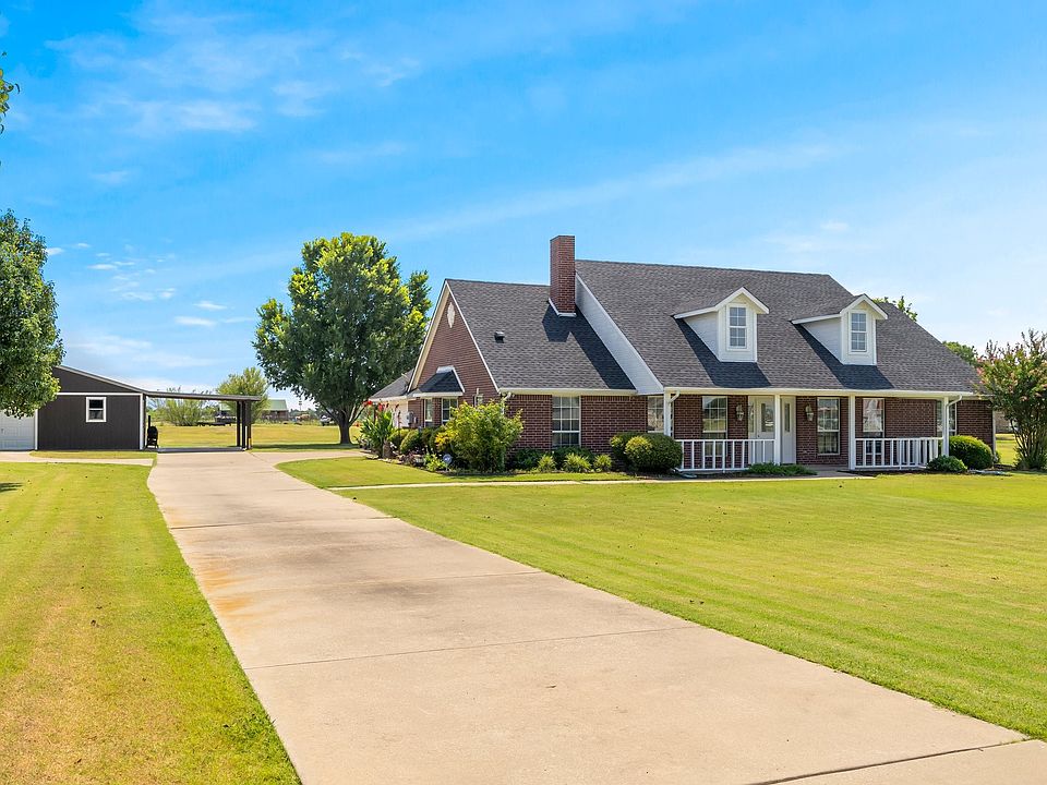 SELLER IS OFFERING A $5K BUYER CONCESSION, NEW SURVEY AND HOME WARRANTY WITH ACCEPTABLE OFFER. Looking for space and want to be close to all of your amenities? This single story, one-owner home has been well maintained and is perfectly placed on a manicured 2.37 acre lot with a 24 x 24 shop and stocked pond with a dock. Enjoy the peaceful setting from your front porch or covered back deck while taking in the views of the pond and wide open spaces. Inside you will find an updated island kitchen with granite countertops, and newly painted cabinetry. The vaulted wood beam ceiling family room is spacious with a wood burning brick fireplace. The back patio is enclosed and offers multiple use. Primary suite with pampered bathroom features a jacuzzi tub, separate shower, double sinks and 2 walk-in closets. The laundry room has room for a freezer or second refrigerator and has a shower perfect for cleaning up after spending a day working outdoors. Spacious secondary bedrooms, full bathroom and powder bath complete this wonderful family home. Roof replaced 2020, HVAC replaced 2024. Other recent updates include: Two 40 gallon water heaters, hard surface floors in family room and bedrooms, some fresh paint inside and out. NO MUD, PID OR HOA. Close to shopping, dining, entertainment, Lake Ray Hubbard (Rockwall), Lake Tawakoni (Quinlan) and Lavon Lake (Lavon)