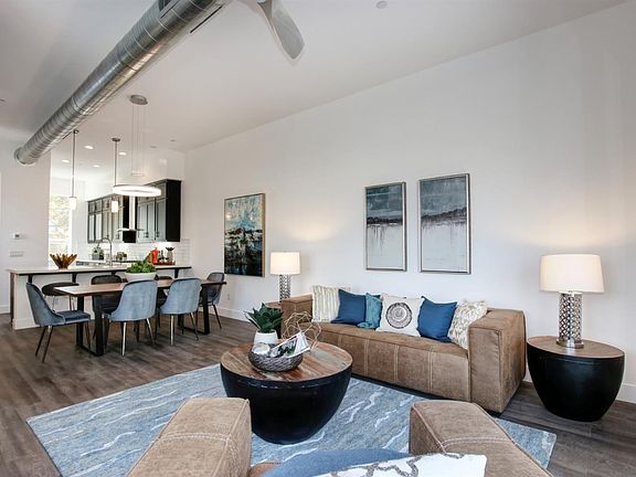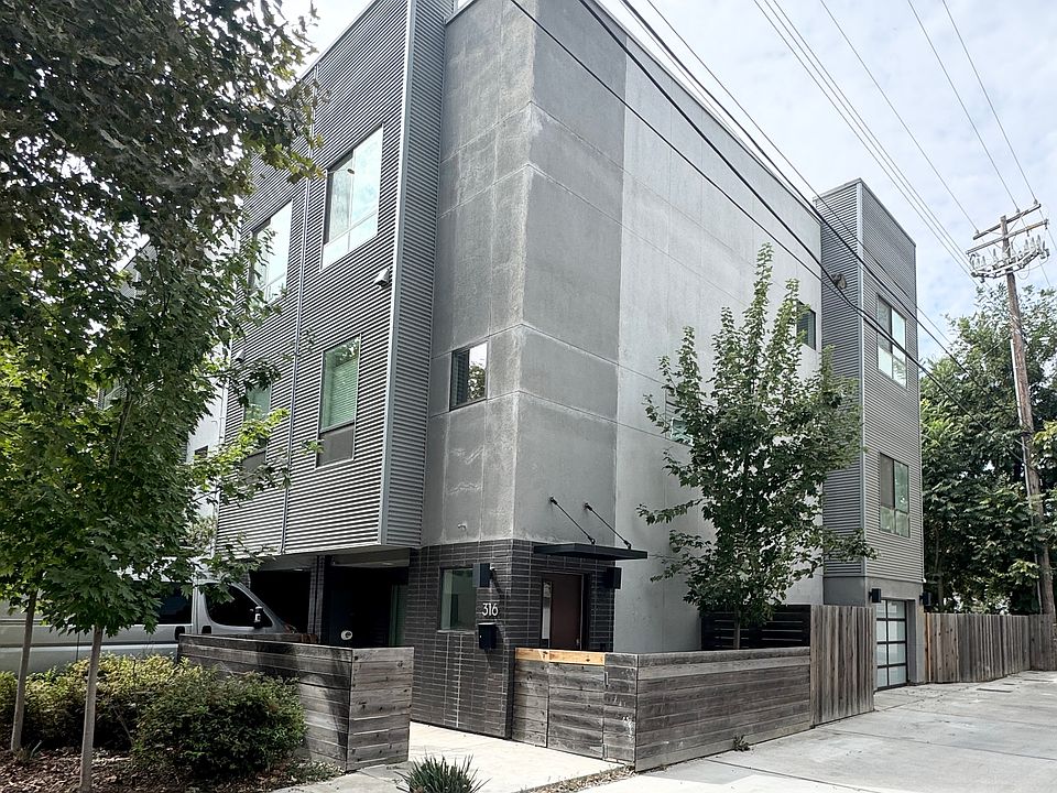 THREE BEDROOM THREE BATH 3-story home in Downtown's Mansion Flats. 11' ceilings on the main floor, first-floor bed/bath. Plank grey floors, designer lights/fans, ebony cabinets with subway tile, gourmet appliances, a spacious primary top-floor bedroom, and open-tread stairs with a steel railing. Covered 1st floor patio w/private backyard, 2nd floor huge deck, and low-maintenance landscaping. Furniture is display only. One car attached garge with remote.