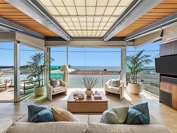PANORAMIC WEST-FACING OCEAN VIEWS FROM THE ENTIRE TOP FLOOR AND TWO OF THE BEDROOMS. This 3-bedroom, 3-bathroom, approximately 1,940 sq ft (BTV) Custom Warm Contemporary Single-Family Home is situated on a prime corner lot just 3 blocks from the beach in Manhattan Beach’s coveted Sand Section. Abundant natural light fills the open floor plan through sliding retractable glass doors, highlighting sweeping ocean views and stunning sunsets. A sexy primary suite with a fireplace, luxurious oval free-standing tub and ocean views. Stylish kitchen includes stainless steel appliances, Sub Zero refrigerator/freezer, 2 Bosch dishwashers. This home features central A/C, 3 stop Dumbwaiter, electronic shades, Italian marble entry floors, elegant limestone walls, and premium Listano Giordano Italian hardwood flooring throughout, 150 bottle wine refrigerator in the bottom bedroom. Rare 4-car parking with an attached 2-car garage and two additional spaces in front. Ideally located just three blocks from the beach, surf, sand, and scenic bike path, just a short stroll to downtown Manhattan Beach’s world-renowned restaurants, boutique shops, and award-winning Grand View Elementary. Conveniently situated within driving distance to LAX, Santa Monica, Beverly Hills, Hollywood, and Malibu.