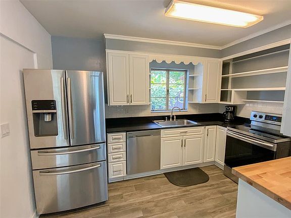 Composite deckingSeparate laundry roomAll-seasons florida roomRear brick paver patioNewer kitchensWood vinyl flooringNew stainless steel appliances