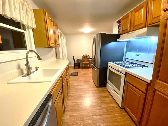Single Unit Property!! 6+ rooms in all! 3 Bedrooms, 1 Bathroom, 1 Laundry/Storage Room, Living Room, Mudroom and an Eat-in Kitchen leading into a deck with direct patio access! Oh, and the patio has a built-in fire pit. All floors are hard surfaces. This home has great space and sun exposure. Is easily accessible and yet has a semi private yard complete with a built-in fit pit! You'll love watching the the sunset in back by the fire. Front of the house faces the east, backyard faces the west. Backyard detached garage and basement not included. Carport plus 3+ off street parking spots and a same level laundry/storage room INCLUDED. Owner pays trash, water and sewer. Tenant pays electric, gas, cable. Tenant responsible for yard, and snow removal. Last month's rent and security due on Lease signing. In accordance to Massachusetts law, last month's rent & security is held in a separate escrowed bank account. First month's rent is due prior to move in. Credit checks and renter's insurance are required.