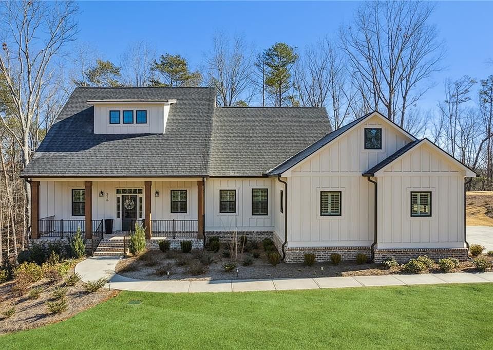 LIGHT, BRIGHT AND OPEN this stunning FARMHOUSE-STYLE 3 bedroom / 2.5 bath RANCH on a FULL DAYLIGHT BASEMENT is gracefully situated on a sprawling 1.5-acre wooded lot within the gated Tate Reserve community in Ball Ground. This beautiful home has barely been lived in and feels like it is brand new - ALL THE BENEFITS OF NEW, WITHOUT THE NEW CONSTRUCTION WAIT! Brimming with curb appeal and luxury finishes, the popular YONAH floorplan - with its 10ft CEILINGS, 8ft DOORS, classic coffered ceiling and abundance of windows - offers a well thought out, open-concept design that allows natural light to flow through keeping this beautiful home feeling cozy, while still sophisticated and elegant. It will be love at first sight as you step into the HUGE gourmet-worthy kitchen which features 42" soft-close cabinets and granite countertops - including an oversized center island w/ breakfast bar seating for 4. This gorgeous space allows you to indulge your culinary creativity with a 5-burner gas cooktop, upgraded hood vent and stainless-steel appliance package. And be sure to not overlook the roomy walk-in pantry filled with wooden shelving. The main level of this lovely home offers a bright and spacious great room with an elegant fireplace and a roomy MASTER ON MAIN suite w/ a spa-style bath featuring a granite countertop with his & hers sinks, a luxurious deep soaking tub & frameless walk-in shower and a spacious walk-in closet. Two well-appointed guest bedrooms with an adjacent full bath (tucked away for privacy) complete this level. Stepping out onto the main-level covered deck, you'll find that it boasts not only a built-in outdoor kitchen area, but space for both lounging and dining overlooking your gorgeous, wooded 1.5 acre property. The UNFINISHED TERRACE LEVEL of this home presents endless possibilities, providing space for whatever you need - storage, workshop or expansion. This wide open, walkout space is just waiting for your special touch to make it whatever you want it to be.