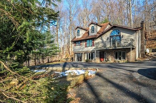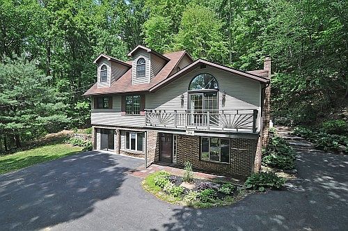 Complete info: http://316bougherhill.IsNow4Sale.com - Back on Market, Septic Permit in hand, brand- new Septic to be completed in early June. RED FOX LODGE . . . a haven for all genres of artists, nature lovers and get-away seekers. A stone's throw from Bucks County, perched on the slopes of Bougher Hill, near the scenic Delaware River, lies the 200-acre Mariton Wildlife Sanctuary and Wilderness Trust. Nestled in this pristine setting, RED FOX LODGE rests on the hillside among nature's finery - where the outdoors come inside for all seasons, and provides your own private sanctuary. Wander through miles of wooded trails and open meadows where fallen leaves rustle under foot and Red Foxes frolic and retreat into your refuge. The entry level is your tranquility and creative space where the light, bright health-fitness room offers a luxurious 4-person, "Am-Finn" teakwood sauna that will revitalize and strengthen. Across the foyer, your cozy art studio with its warming wood-stove and afternoon sun will surely inspire your imagination. The artsy spiral staircase leads to the inviting, main level where you'll enjoy the charming sunlit living room with its cathedral ceiling and sweet wood-stove w/floor-to-ceiling bricks. Step onto the balcony for panoramic winter views of Stouts Valley and outdoor serenity. Off the Living Room, the updated Kitchen offers plenty of cabinet space, Stainless Steel appliances, "touch" faucet, center Island, terra cotta floor, and features a lovely "greenhouse window." Glass doors lead to an expansive hillside deck and garden area. The nearby dining room will nicely accommodate intimate family gatherings. All bedrooms offer access to outdoors. Listen to the trees swaying on one of the open-air balconies - pick one. Enjoy your morning cuppa' Jo on the deck outside your master bedroom. While all bathrooms are gorgeous and updated, the master bath is truly spa-like. Enter the luxurious space through the frosted, ribbed glass door and be wowed. The oversized floor tiles beautifully complement the frameless shower enclosure w/transom, travertine-like, floor-to-ceiling tiles w/decorative accent work, marble floor and seat, and "Mr. Steam" shower. The custom vanity features goose-neck faucet, and all fixtures are rubbed bronze. Truly a relaxation experience-every day. The third floor "tree top" level completes the floor plan, with a wonderfully inviting large, sunny, loft with dormers and skylight, and two more bedrooms. Additional features include hardwood floors, decorator paint colors, Steam Shower, ceilings fans in all bedrooms, water softener, large storage room, and workshop. If you yearn to be immersed in nature, surrounded by towering trees, rolling hills and winding country roads, come and explore this enchanting property and allow your vision to take hold. Its whimsical details will surely ignite your creativity. Centrally located 1 mile from Riegelsville, Bucks County and bridge to NJ. Easy access to Philadelphia, Princeton and Manhattan. 8 miles from Easton, Pa. w/great restaurants, cultural/arts venues and Route 78. .