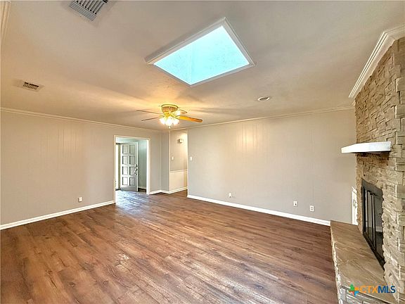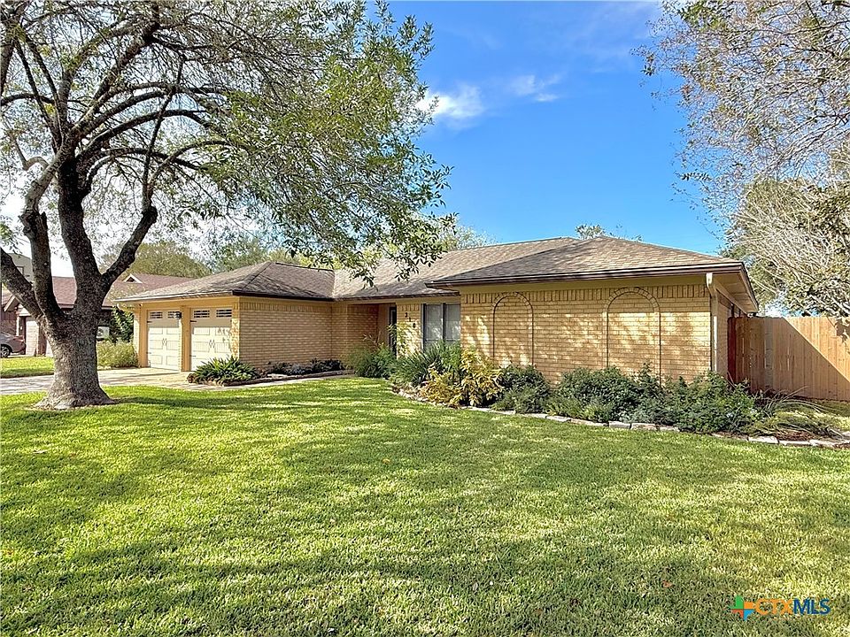 Very well maintained and centrally located in the heart of Victoria off Navarro street in Castle Hill West II. This home offers 4 bedrooms, 3 full baths, 2 living areas, 2 dining areas, and a sunroom off the second living area. Primary suite has his and her closets, classic built ins, and an extra space to be used as an office, nursery, private sitting area, etc. Second bedroom with private full bath featuring a large jacuzzi tub! Split bedroom plan and open concept with brick fireplace and custom built-ins. Gourmet kitchen with stainless steel appliances, quartz countertops, and an elegant brick eating bar. High ceilings, skylights, and a sunroom make this home a one of a kind! Newer HVAC system, newer high quality winter guard roof, and new flooring. Beautifully landscaped front and back yard, and a separate workshop area with storage and garage door. This is a rare gem and will not last long!