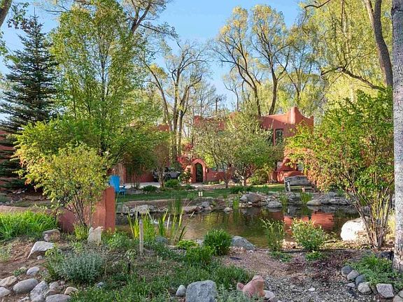 Inviting Southwest style 2 bedroom/2 bathroom condominium, just a 10 minute walk to downtown and the historic Taos Plaza. Very well maintained; this home offers both privacy and a sense of community, with well-designed details throughout, including a flagstone and gravel walkway, warm wooden floors, and traditional Saltillo tile flooring that add both charm and character. The community is thoughtfully kept, featuring landscaped grounds and a serene pond-side sitting area - a peaceful spot where residents can unwind, read, or simply take in the natural beauty. Don't miss this opportunity to have a piece of your own southwest charm.