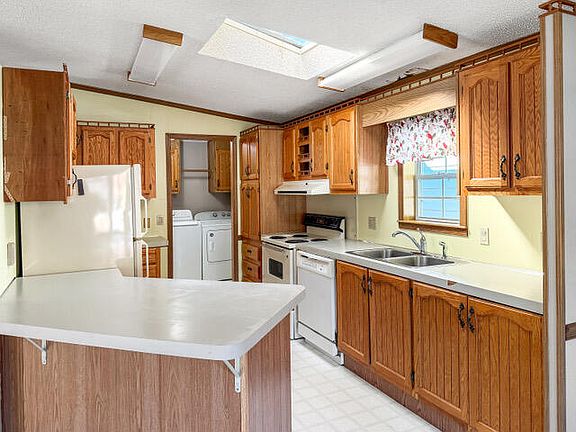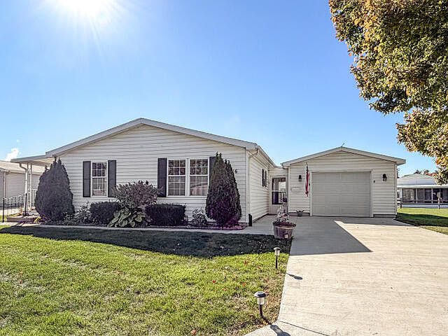 Located in the Cadgewith Farms 55 and older community, this 2-bedroom, 2-bath manufactured home offers easy living with an open floor plan. The spacious living area flows seamlessly into the kitchen and dining spaces, making it perfect for everyday living or entertaining friends. Enjoy the convenience of a 1-car detached garage connected by a breezeway, keeping you covered rain or shine. Relax on the covered front porch or unwind on the covered patio overlooking the backyard. Residents enjoy fantastic amenities, including a community pool and clubhouse, which is ideal for social gatherings, fitness classes, or a fun afternoon by the pool. You'll also appreciate that the streets have been recently paved, adding to the well-cared-for appeal of the neighborhood. Interested parties must be pre-approved by the park before being able to purchase homes in Cadgewith Farms.