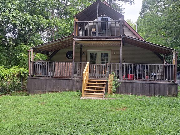 This 2 bedroom A-frame home is located on a mountain top, providing a sense of seclusion while remaining close to amenities. The living room includes large closets on each side, and the dining area is combined with the.kitchen, which offers new appliances. The main bedroom is situated on the first floor with an adjoining main bathroom that also contains washer and dryer hookups. Upstairs features a small bedroom and an additional space suitable for use as a reading or craft area. Both floors include walkout decks for outdoor use. The yard is fenced and includes a chicken coop and dog house. There is a garage with over 1,000 sq ft of spaces for vehicles, boats, bikes, and lawn equipment, along with two driveways for convenient access. The seller will transfer already purchased new flooring and a new bathroom vanity to the new owner. With a little TLC, this home can be your country getaway! Don't let this one pass you by!