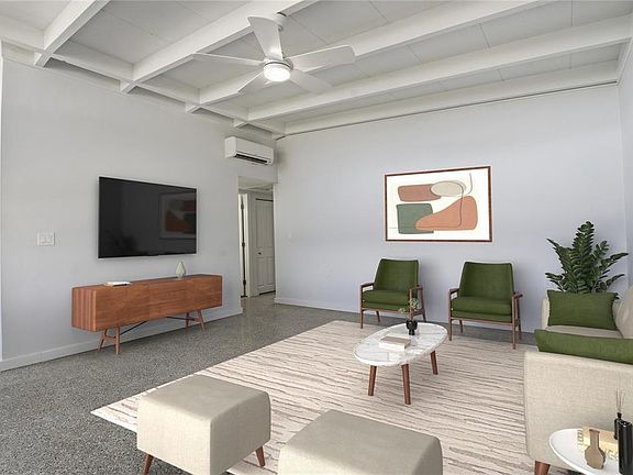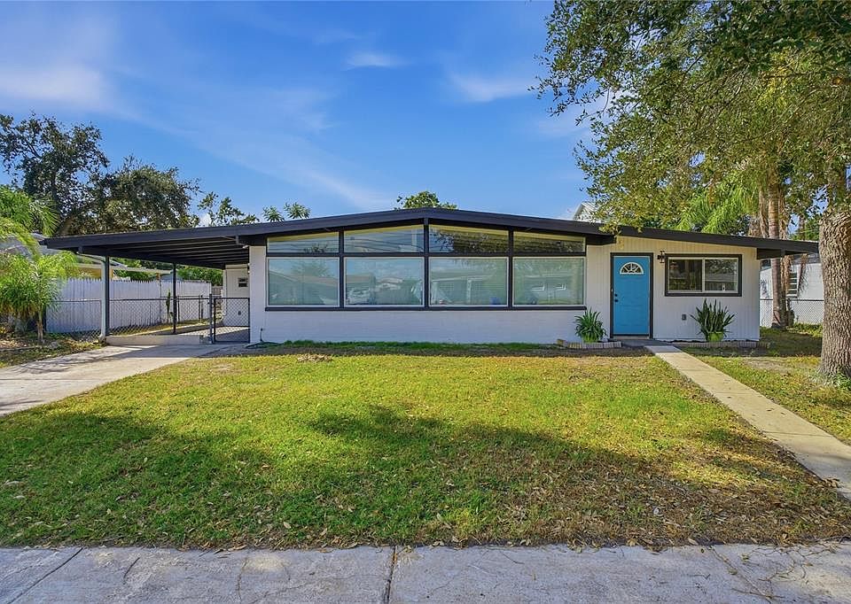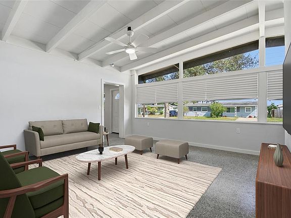 One or more photo(s) has been virtually staged. Welcome to Oldsmar Country Club Estates, a friendly pocket of Oldsmar where neighbors gather at the park after school and weekend walks lead straight to waterfront trails. This updated 3-bed, 2-bath mid-century style home is filled with soft morning light thanks to oversized windows and an easy layout. The kitchen has been fully refreshed with modern finishes, and both bathrooms feature clean, updated styling. Classic terrazzo flooring in main living areas, mixed with tile floors, provides waterproof flooring for those active households with pets, and anyone who prefers low-maintenance living. Vaulted, open ceilings, keep to the mid-century modern design. Major systems are already taken care of: newer AC units, permitted electrical improvements, an up to date roof, inspected and flushed plumbing, offer confidence and reduced upkeep. Energy-minded buyers will appreciate the efficient cooling and sunlight that naturally brightens the home throughout the day. Step outside to a fully fenced yard. There’s space to grill, garden, or add a play set without feeling crowded. Walk one block to great fishing or nature trails. Located in a prime Oldsmar location, this property is walking distance to RE Olds Park, Dog Park, pickleball courts, tennis courts, and the Oldsmar Trail. This active, mixed generational neighborhood has everything you need, from outdoor recreation to community events, making it a suburban paradise. Locals love this location for how simple life feels. Close to top-rated schools. Commuters appreciate the short drive to Tampa International Airport, world-class beaches, and major roadways. Move-in ready, thoughtfully updated, and located in one of Oldsmar’s most convenient, golf-cart-friendly pockets—come see how everyday life unfolds here.