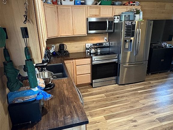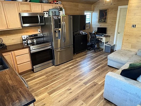 A 14x40 cabin—featuring a 14X6 front porch, vaulted ceilings, and life proof vinyl plank flooring. Water, power and septic installed plus a tankless water heater. Samsung appliances installed in kitchen (less than a year old). An RV electric hookup is on the side of this cabin. It also has 3 sheds outside for extra storage of farm or recreational equipment. Shed 1: 8x12, Shed 2: 8x12 with power and washer dryer hookup installed, and Shed 3: 10x12. Lastly: 2 large chicken coops with runs outside this cabin as well.