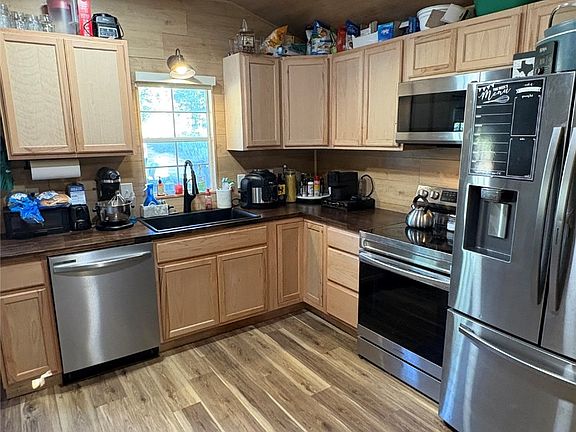 Each cabin has a separate address and mailbox and a Well with a 2,500 gallon storage tank servicing both cabins with water lines running down to the animal areas as well. 2 fenced pastures plus a gated entrance to the animal section. 1 stock tank and 2 wet weather ponds that could be improved to be additional tanks, Mature trees covering the property. Schedule your showing today!