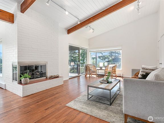 Situated on the edge of Bellingham’s coveted Edgemoor neighborhood, this timeless mid-century tri-level offers sweeping, south facing views over Chuckanut Bay, to Governors Point, and all the way to Anacortes. Classic hardwood floors, walls of windows, and exposed beams set a tone of understated elegance throughout. Updates include mini-split heating/cooling, roof, appliances, water heater, paint, flooring, expansive deck, patio, irrigation and fully fenced turf dog run. With three traditional bedrooms plus two additional flexible spaces, there’s room to adapt the layout to your needs—alongside a generous quarter-acre lot and included conceptual plans for future expansion. A rare view property with charm, comfort, and remarkable potential.