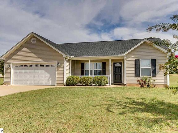 What a fabulous little house to call HOME! This home is great for those just starting out OR for a downsize - all on one level and just the right amount of space. This three bedroom two bath single story home boasts the perfect location - a quick jaunt to I 85 and you will be in the city of your choice, Greenville OR Spartanburg It's super close to Highway 101 and has excellent access to BMW and the airport. This split floor plan provides a central hub for entertaining, with a spacious Great Room offering up a vaulted ceiling with fan. This space is open to the breakfast area and kitchen, a great place to congregate. The master bedroom is has two spacious walk-in closets and a full bath. The secondary bedrooms share the hall bathroom. The backyard is very spacious and has a functional patio area. The neighborhood has an HOA, currently only $140/year. This home may qualify for the USDA Rural Housing Loan, please contact your lender to inquire. Additionally all appliances will convey, making this an attractive home for an FHA Loan. Schedule your appointment to see this home that is priced right and ready for YOU! Spartanburg District 5 Schools!!