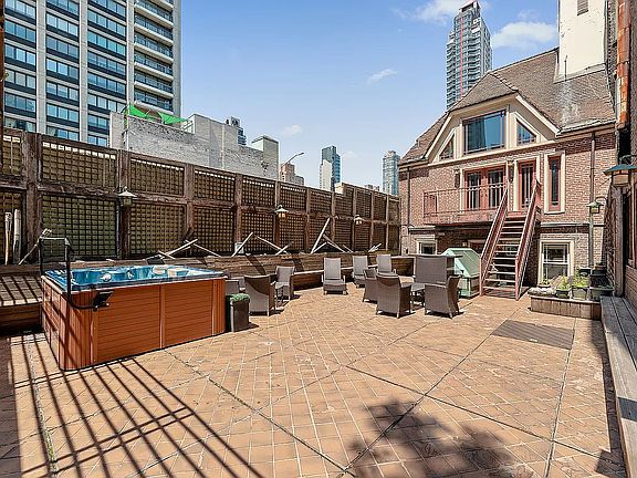 Landscaped backyardExposed brick wallsIndustrial authenticityElegant bedroomsPlayful architectural detailsJuliet balconyQueensboro bridge views