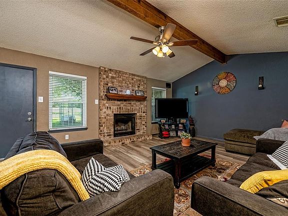 Don't miss out on this Hewitt home! 3 spacious bedrooms and 2 full baths. Living room has woodburning fireplace and raised ceilings. Also has all new tile floors that look like wood throughout living spaces. Primary bath just recently updated with gorgeous new granite counters and tile shower. Also features dual vanities and separate walk-in closets. Beautiful yard with mature shade trees, sprinkler system, fenced yard, and above ground pool ready for this Texas heat.