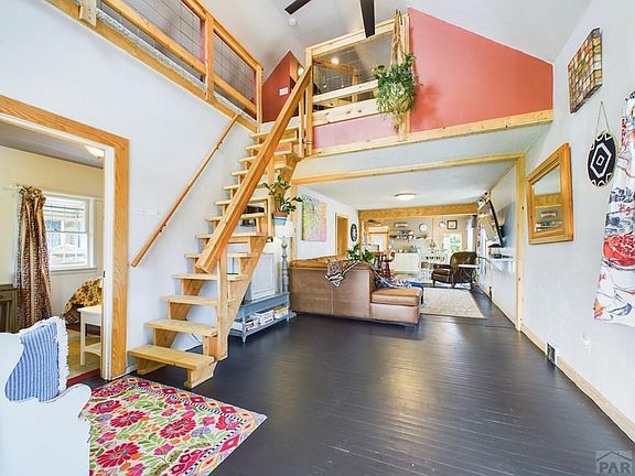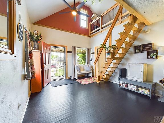 Mesa Junction Urban Mini-Farm!! If you have always dreamed of owning a little slice of country heaven in heart of the city, you have found your new home! This rare & unique property features 2 bedrooms plus large loft, & detached studio on hard-to-find double lot in trendy Mesa Junction across the street from the Arkansas River. All contents of the home are included in the purchase price so just bring your suitcase and move in! Fish, swim and kayak on the river, enjoy great restaurants and historic downtown Pueblo just steps away, then come home to your mini-farm with beautiful flower & vegetable gardens, including sturdy 20 ft. greenhouse with doors at each & a flock of heritage chickens housed in a large custom chicken run, and coop with a fenced in yard area for free ranging. Best of all is the custom she/he shed/office where you can get away from it all. You will love open concept of the main home with rustic and salvaged materials throughout, featuring a designer decorated great room, spacious master with lots of windows, large family bathroom with a huge shower and boho chic tile, downstairs secondary bedroom & the wonderful 500 sq. ft. newly carpeted loft with room for several beds and/or craft play area. The retro-modern kitchen with cool vintage look/new appliances, refurbished vintage metal kitchenette & gas stove will delight you. Relax by the backyard's lovely water feature; watching a movie on the outdoor screen, while taking in some of Pueblo's spectacular sunse
